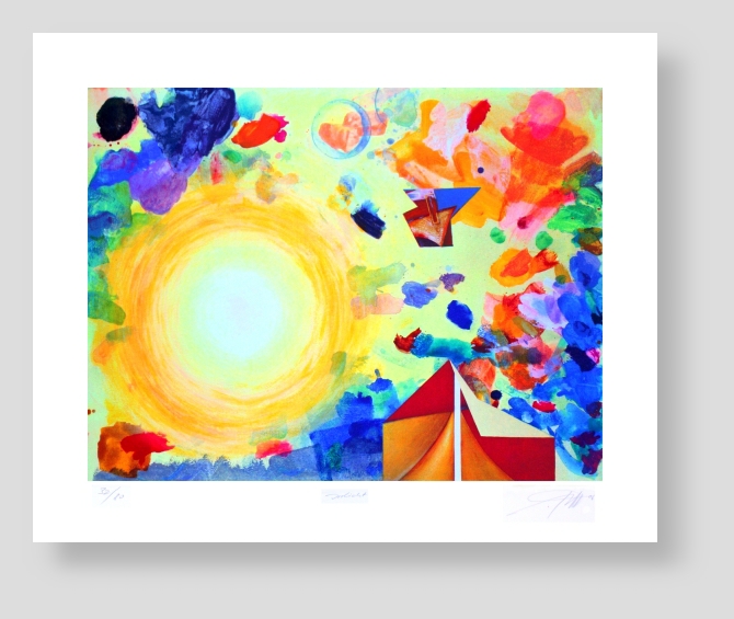 Irrlicht Original-Serigrafie 2006 gedruckt auf 300g/qm Bütten 22 Farben Auflage: 80 Papier: 90 x 75 cm (B x H) Motiv: 72 x 55 cm (B x H) Will O' - the Whisp Screen print 2006 Printed on 300g/sq.m. Bütten Colours: 22 Edition: 80 Paper: 35,4" x 29,5" (w x h) Motif: 28,3" x 21,6" (w x h) |